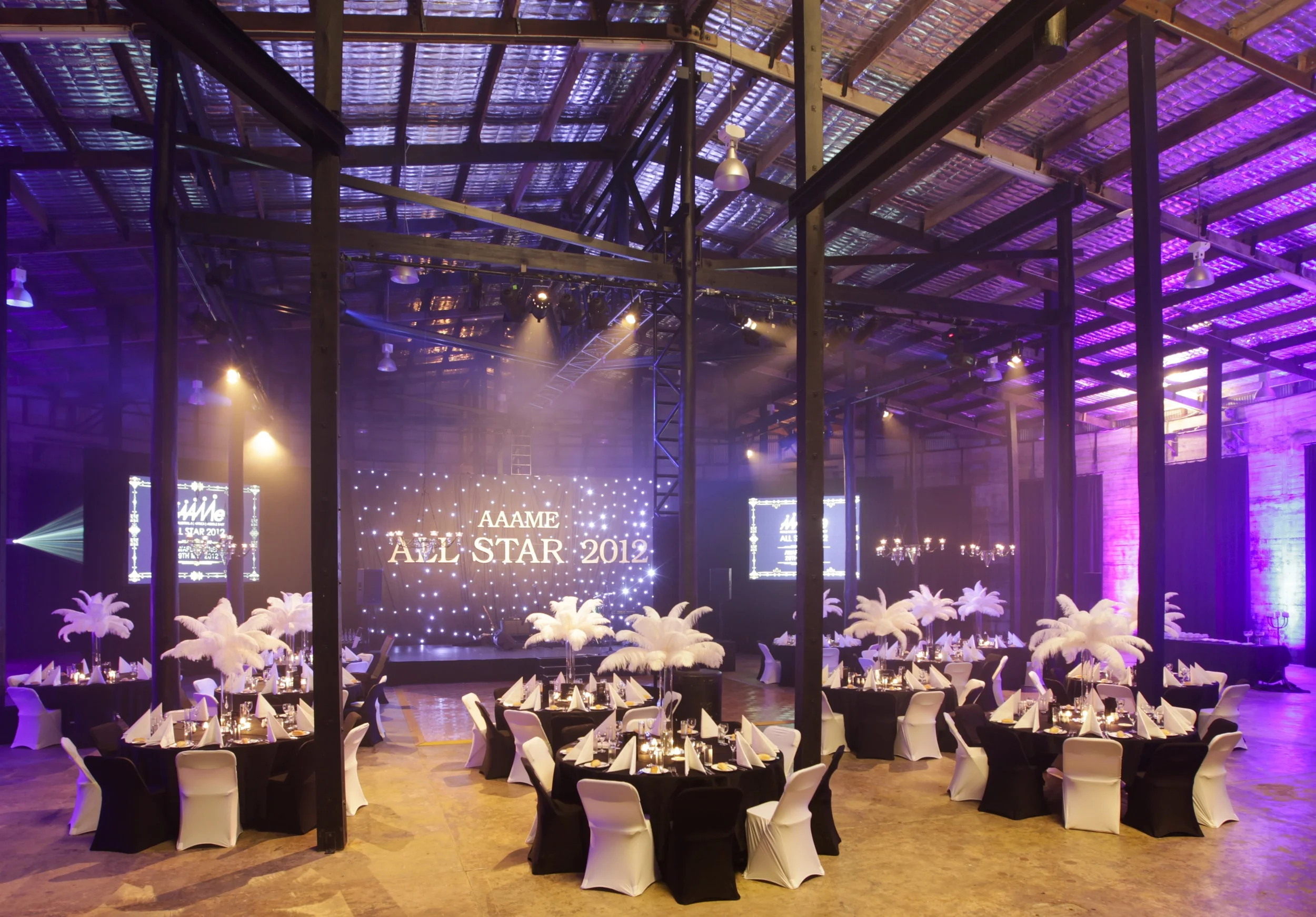 A chill out lounge will be set with black and white dry bars. The area will be curtained off with black push up curtains. the single long table will have a black and white striped floor length cloth and the chairs will be covered with black and white covers. Glass style chandeliers filled with tropical orchids will hang low from the rafters creating unique style centre pieces, this will be complimented by a row of candle filled votives. In keeping with the elegance of the evening a degustation menu will be served.